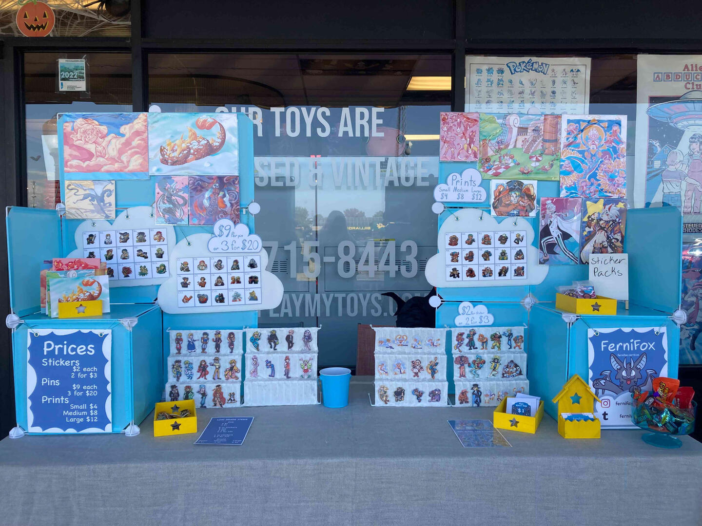 Hi, I’m FerniFox, an Alabama based digital artist who makes pins, prints, and stickers. I put a cartoony twist on my favorite characters. Below are examples of my work.